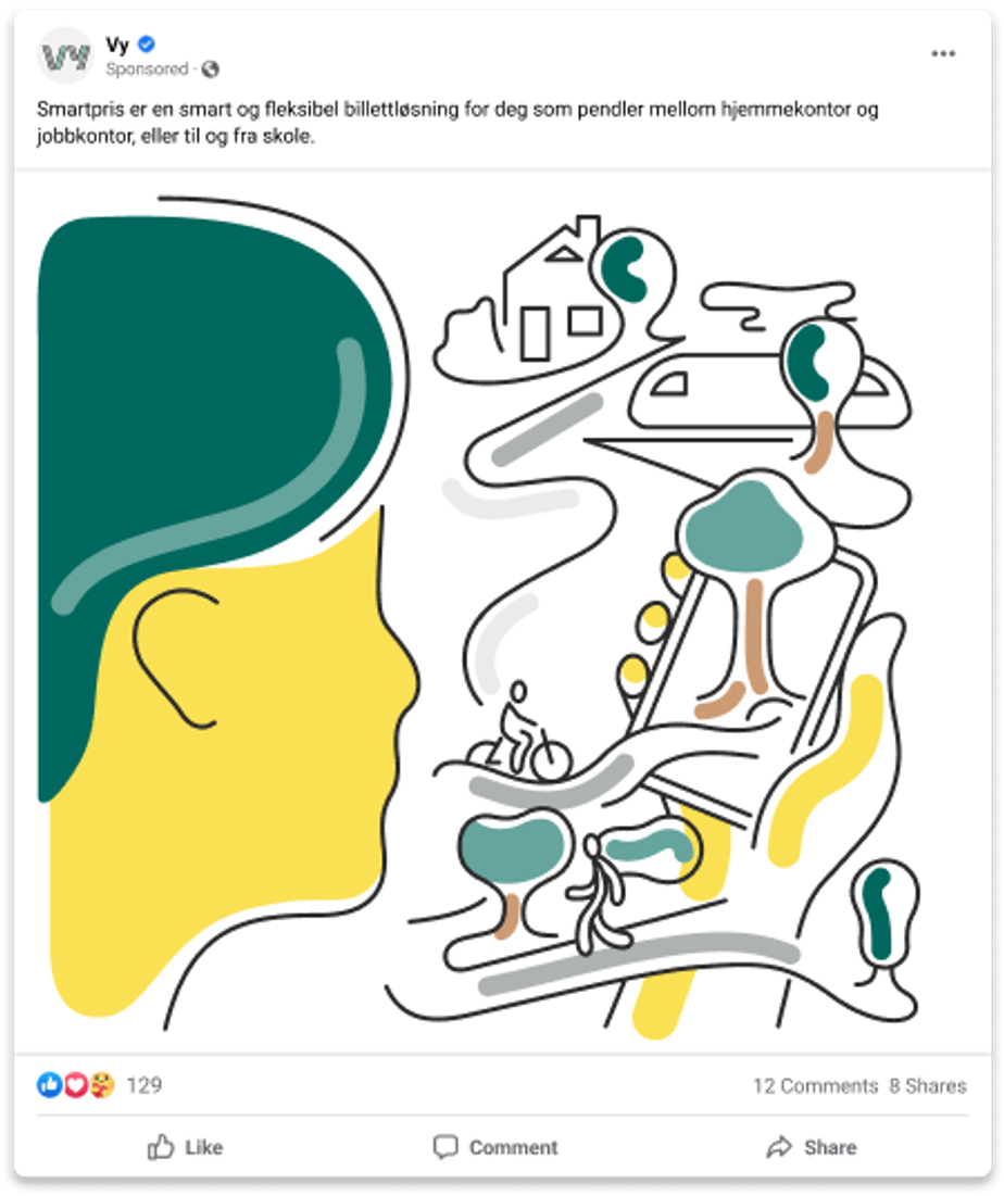 All new illustrations, modifications, and usage cases intended for publication must be reviewed by Nina Tøgard, Vy’s brand manager. This ensures a consistent and universal expression across all channels.